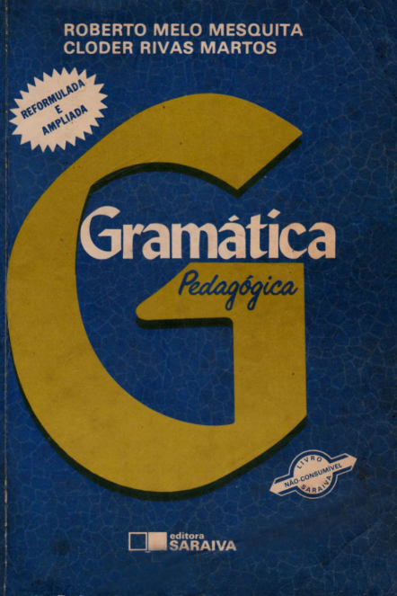 Título completo: Gramática Pedagógica Local de publicação: São Paulo/ Brasil Quantidade de edições: 31 Editora: Saraiva Gramática escolar (LM) “Apresenta a parte teórica da matéria e também os exercícios de fixação e verificação de aprendizagem, SEM, NO ENTANTO, DEIXAR ESPAÇOS PARA AS RESPOSTAS DO ALUNO. CUIDE BEM DESTE LIVRO, APÓS UTILIZADO ELE PODERÁ SER REAPROVEITADO […]