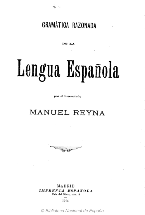 Título completo: Gramática Razonada de la Lengua Española por el Licenciado Manuel Reyna Local de publicação: Córdoba/Espanha Quantidade de edições: 1 Editora: Imprenta Española Gramática normativa “La gramática es’á la vez ciencia y arte. Como ciencia estudia las leyes inmutables comunes á todas las lenguas, buscando la razón de los hechos que, á pesar de […]