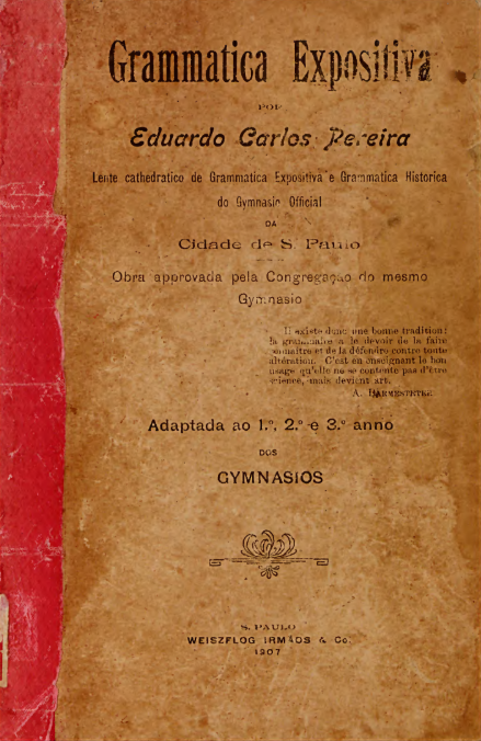 Título completo: Grammatica Expositiva Local de publicação: São Paulo/Brasil Quantidade de edições: 1 Editora: Weisfzflog Irmãos e Companhia Gramática normativa “Grammatica portugueza é a exposição methodica das regras relativas ao uso correcto da lingua portugueza.” (sic, pág. 3). Gramática escolar (LM) “Adaptada ao 1°, 2° e 3° annos do Gymnasios” (sic, Capa). “Dest’arte […]