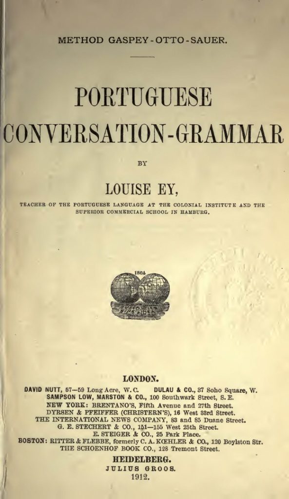 Título completo: Portuguese conversation grammar Local de publicação: Heidelberg/Alemanha Quantidade de edições: 5 Editora: Julius Groos Gramática Descritiva: “In this Grammar, as well as in that employed as a model, I have tried to overcome one of the greatest difficulties of the Portuguese language i.e., the pronunciation by adopting the phonetical system of the Association […]